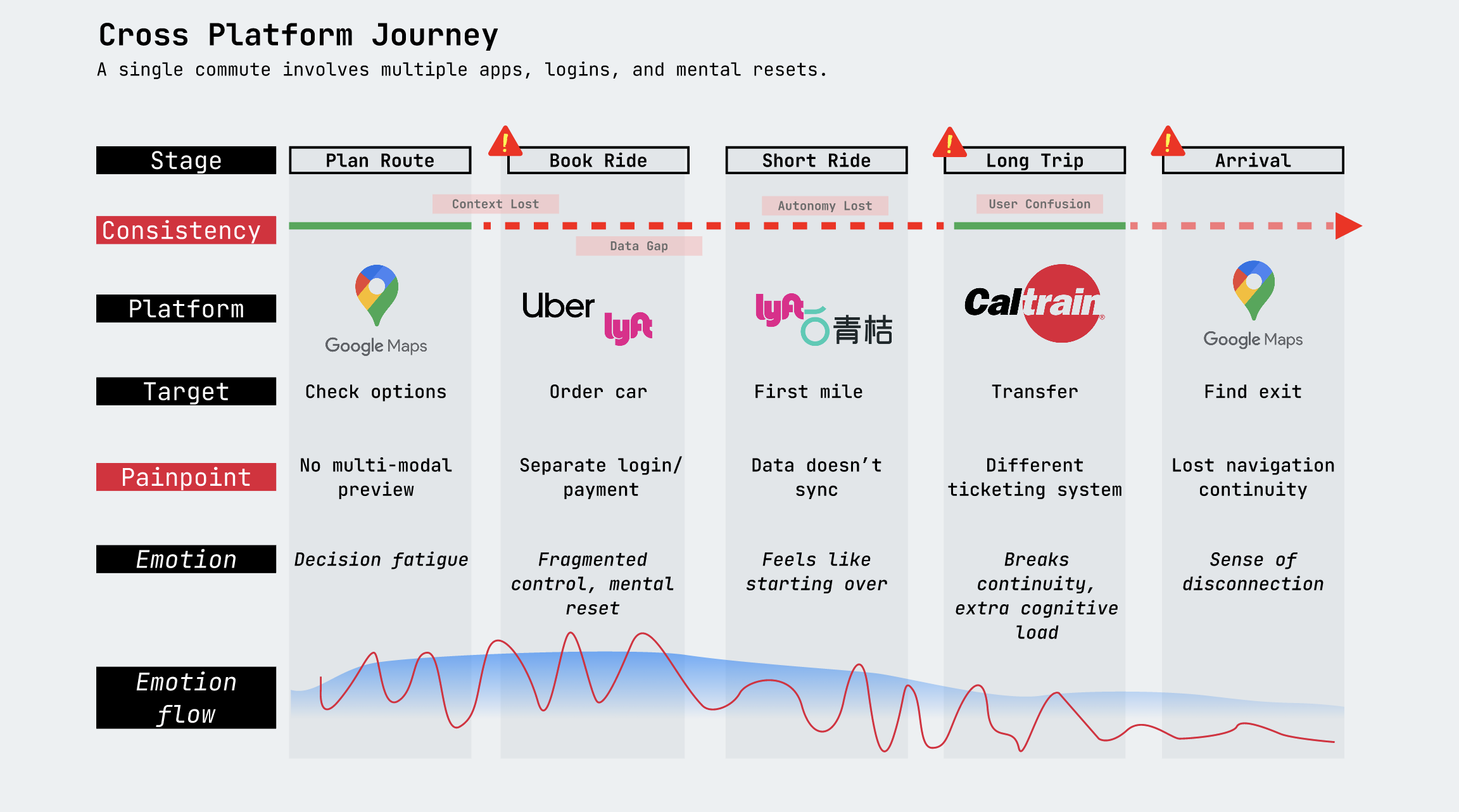 Beneath the promise of automation and speed, commuters still face fractured experiences with switching between platforms, systems, and modes of travel that don’t speak the same language.